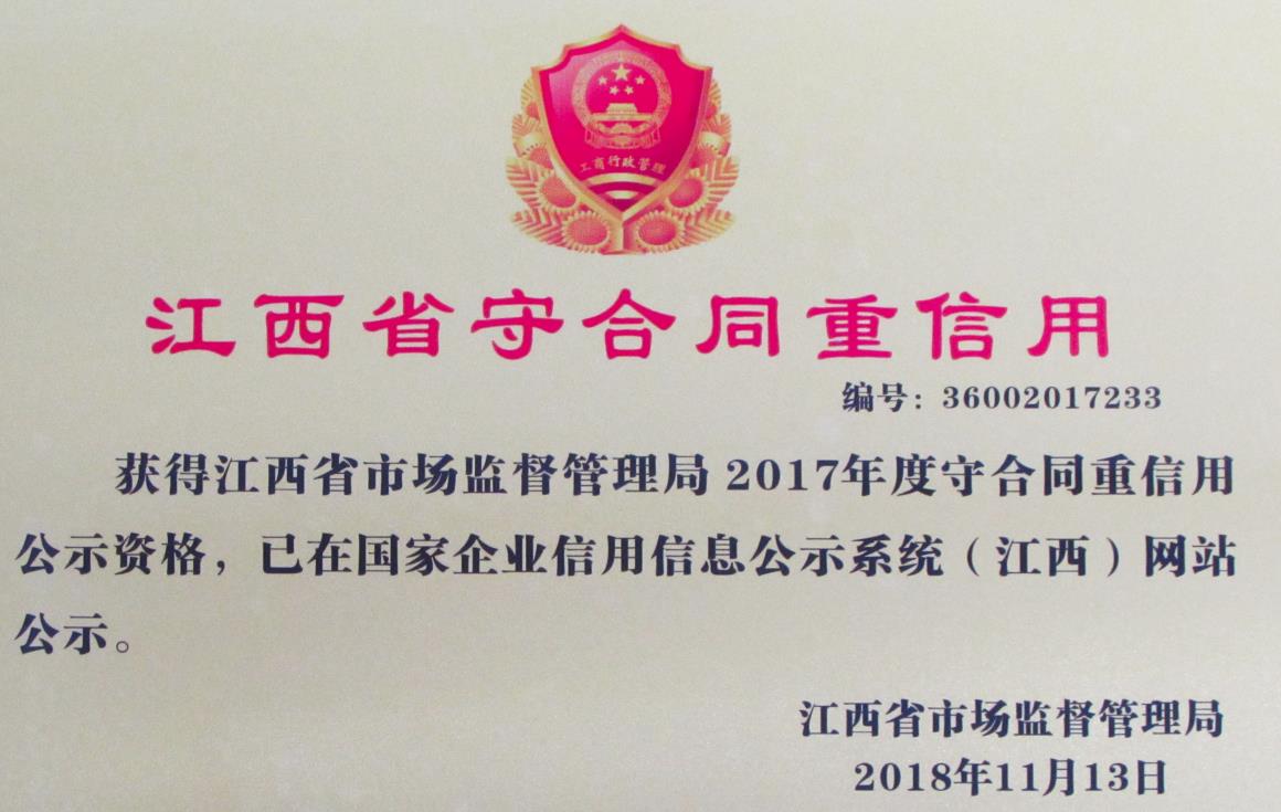 國家高新技術(shù)企業(yè) 江西省守合同重信用